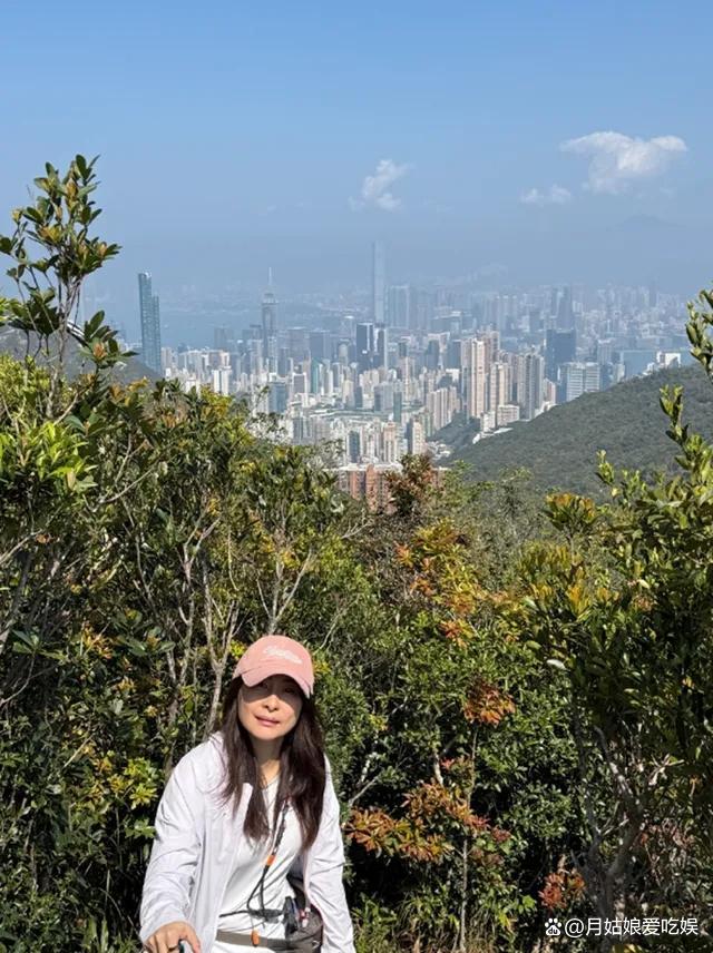 走路也好、爬山也好,她的状态很“稳”。不抢镜,也不摆拍。那顶粉色棒球帽一戴,白色外套一穿,素颜出镜,不遮眼纹颈纹,反而更像在告诉你:我没打算演给谁看。