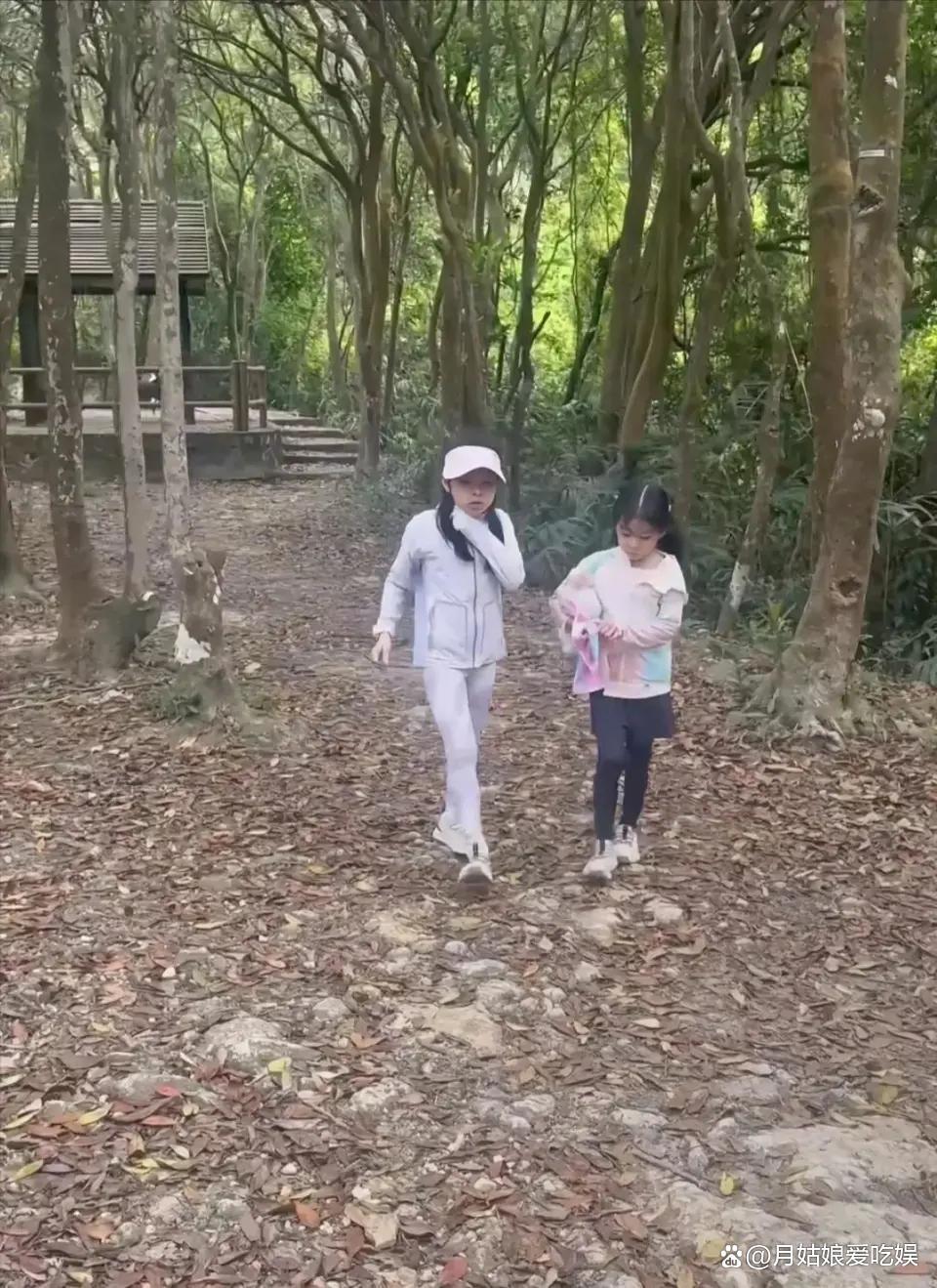 去年4月那次徒步,小女儿还小,体力跟不上,霍启刚是把孩子背上去的。