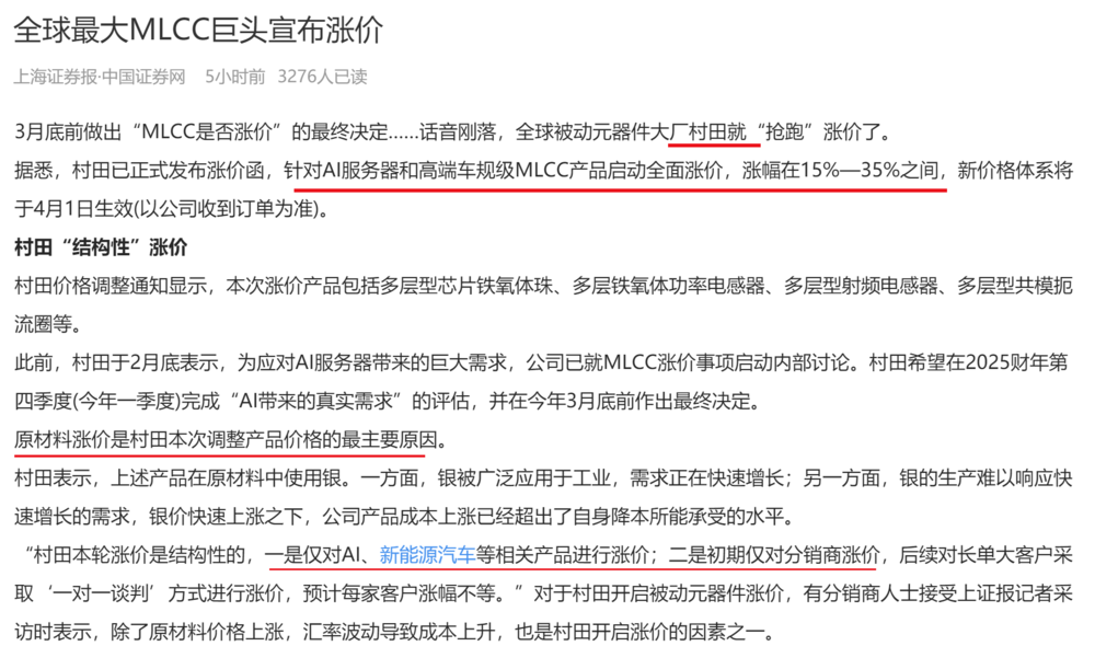 更新:全球最大MLCC巨头宣布涨价