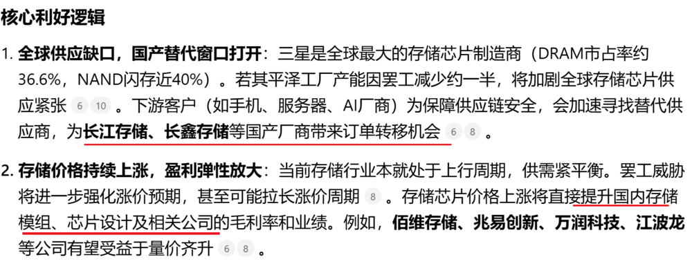 三星罢工事件对A股相关公司,特别是存储芯片和半导体产业链,总体构成利好。这主要基于全球供应缺口、国产替代加速和价格上涨等逻辑。
