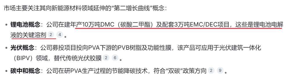 DMC是绿色化工基础原料,下游应用广泛且均衡。其中,锂电池电解液溶剂是最大的需求驱动力,占比约32.84%;传统应用聚碳酸酯(PC) 占比约32.35%,其他领域合计占比34.81%。溶剂在电解液中质量占比高达85%,因此新能源汽车和储能产业的快速发展是DMC需求增长的核心。